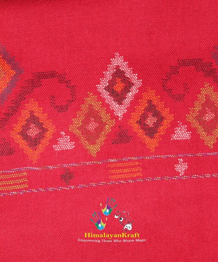 Kullu Handloom Pure Wool Red Floral Design Shawl